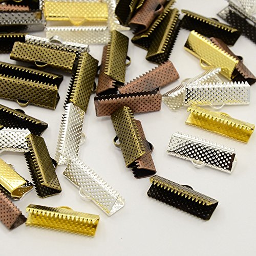 PEPPERLONELY Brand 200g (Approximately 345PC)Mixed Color Ribbon Crimp Ends & Cord Clamps 5/8 Inchx5/16 Inchx3/16 Inch(16x8x5mm)
