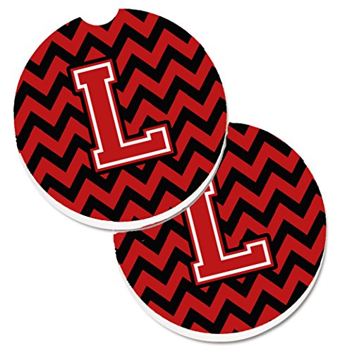 Caroline's Treasures Letter L Chevron black & Red Set of 2 Cup Holder Car Coasters CJ1047-LCARC, 2.56, Multicolor