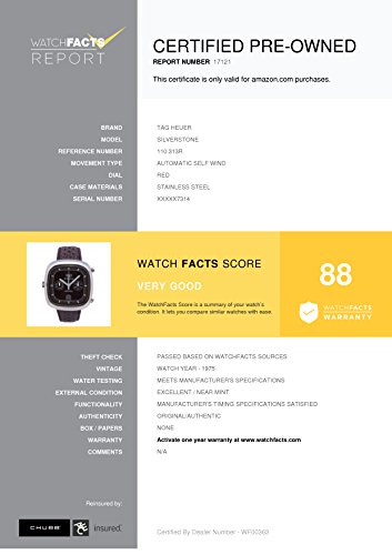 -. Feature : Tag Heuer Silverstone 110.313r with Adjustable band, stainless-steel bezel and red dial / Authenticated by WatchFacts. Grade Rating: 88 / Condition: Very good / No papers offered with this watch / Automatic-self-wind movement / Watch year: 1975