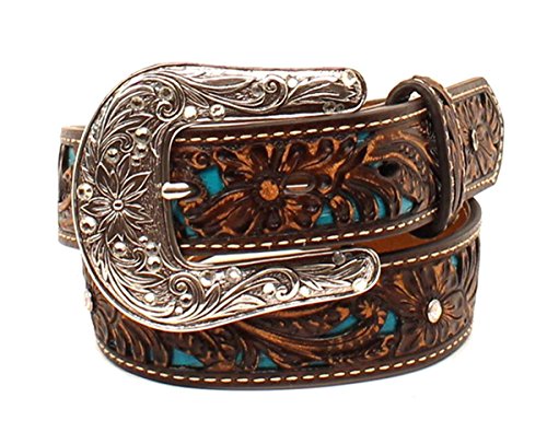 Studio : Ariat Publisher : Ariat Product Description Give her the perfect finishing touch to any outfit with this belt from Ariat. This belt is made with a sparkly blue background, has rhinestone accents, floral tooled details, and measures 1-1/4" wide. This belt will add the perfect amount of flare to her jeans or skirt. Give her a belt she will love from Ariat. 0