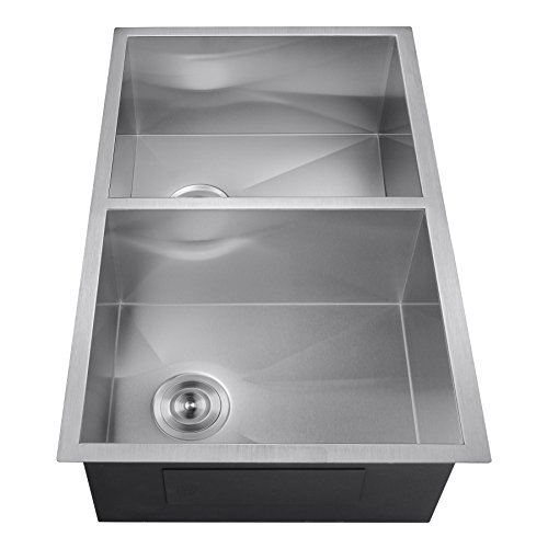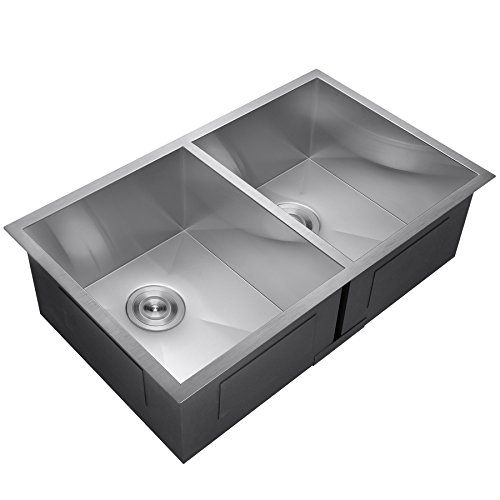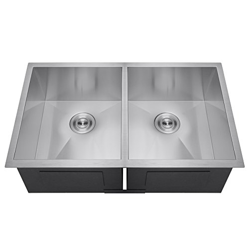 Perfetto Kitchen and Bath 33" x 22" x 9" Handmade 18 Gauge Stainless Steel 50/50 Double Basin Undermount Kitchen Sink w/ Dish Grid & Drain