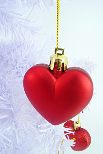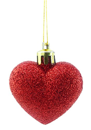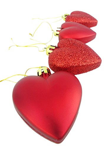 8 x 5cm RED Glitter + Matt Heart Shaped Christmas Tree Baubles