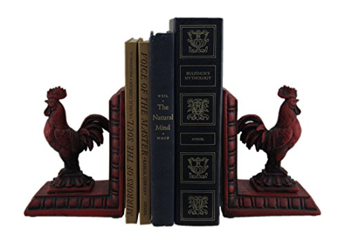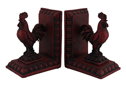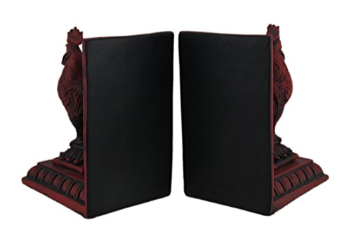 Red Roosters on Pedestals 6 Inch Resin Decorative Bookends