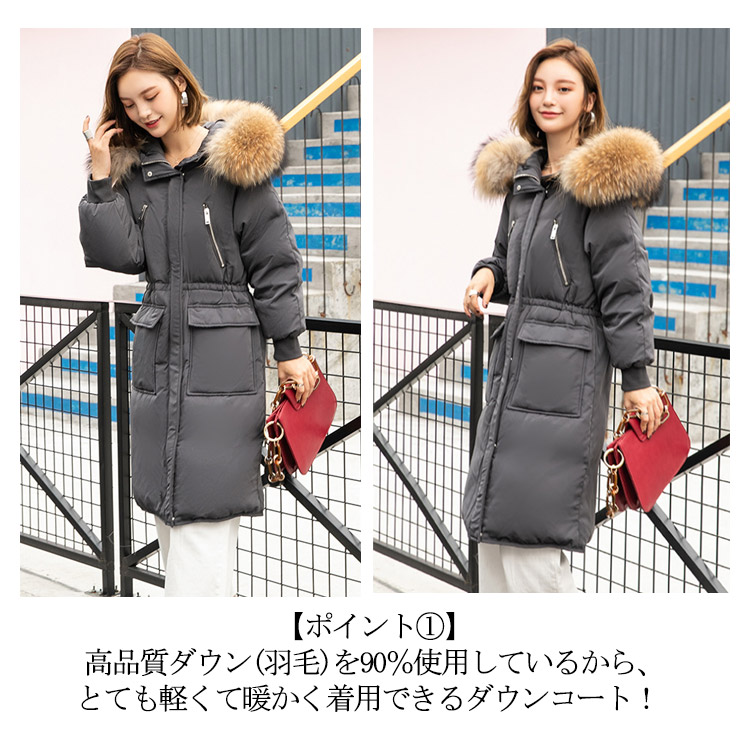 | ダウン90%仕様の美ラインハーフコート♪人気のファー&フード付きデザイン。ウエストデザインで、スタイリッシュに着こなせます。オン、オフ問わずに暖かく着れるアウターです。 | |