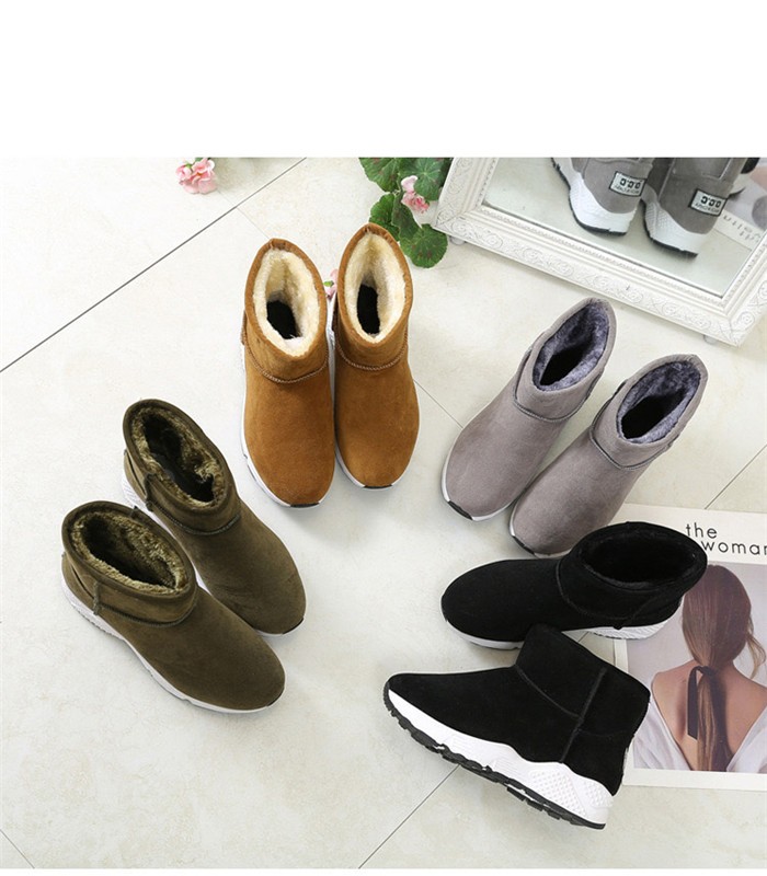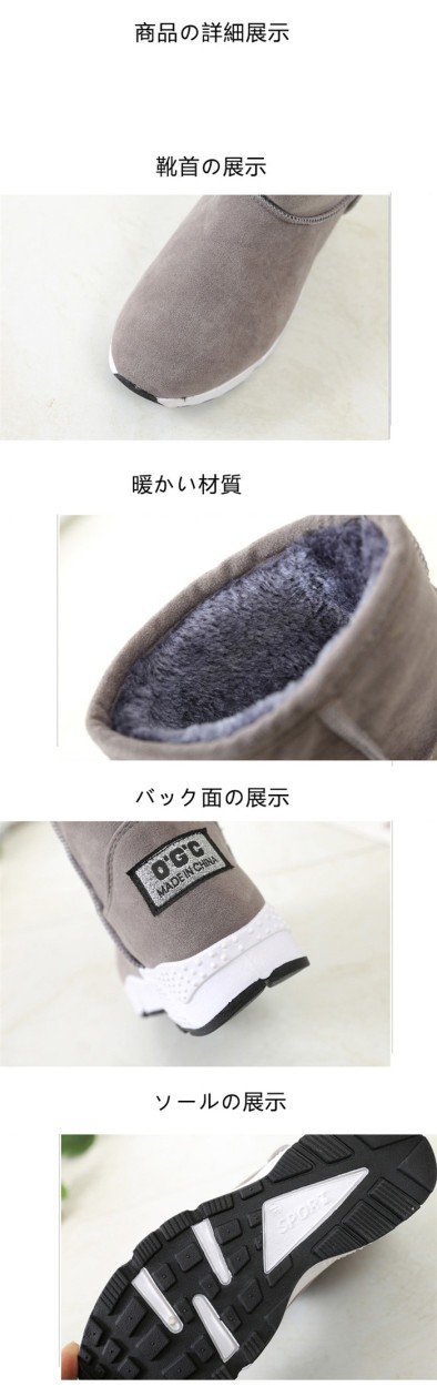 靴の表面の材質:スエードソール:ゴムヒールの高さ:3cm約筒丈:11cm約色:グレー、カーキ、グリーン、ブラック足の長さ:写真のように寒い冬に一足だけで、暖かいです。裏面に暖かい材質で作って、冬に最適です。ムートンブーツ レディース 靴 大きいサイズ ローヒール やわらか あったか 冷え性 保温 防寒 雪 滑らない 疲れにくい 家族