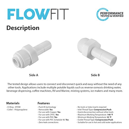 Express Water 3/8" Stem Reducer 1/4" Fitting Quick Connection Parts for Water Filter and Reverse Osmosis RO Systems - 10 Pack
