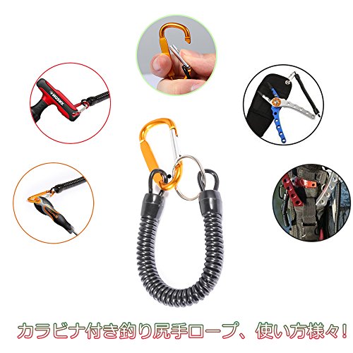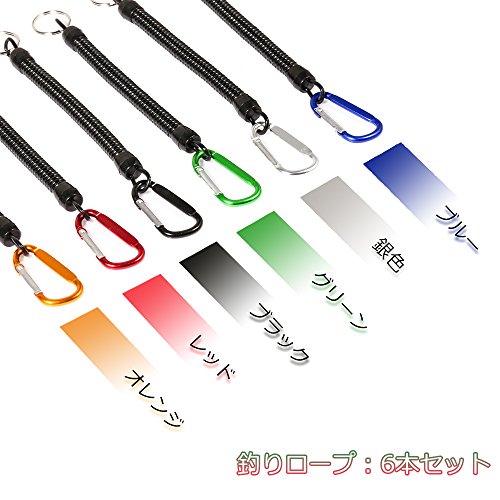 -. Title : SECHEER 竿の落下防止用 カラビナ付き釣り尻手ロープ スパイラルコード 最大伸長1.1メトル 6本セット