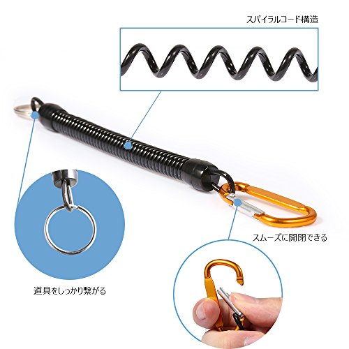-. Feature : ①竿の落下や紛失を防ぎ、その他キーチェーンなど、脱落防止等に使い方は色々なスパイラルコードです。 / ②長さ:約22cm、伸長範囲:約22~110cm、耐荷重:5kg、重さ:約15g/本、セットの中:尻手ロープ8本セット。素材:プラスチック、アルミニウム合金、ステンレス / ③自動伸縮:伸縮性に優れたポリウレタン樹脂を採用し、またスパイラルコードの構造で、伸縮性と柔軟性を持ち、伸長した後で自動的に元の形に回復できます。 / ④軽量・携帯便利:とても軽量な尻手ロープですから、作業中道具を取ったり使用したりなどに便利!上空作業でも道具が落下する心配がない。 / ⑤用途が広い:釣りだけではなく、アウトドア活動・上空作業・道具の紛失防止・ハイキング・キャンプ・おもちゃの紛失防止などに適用します。使い方様々!