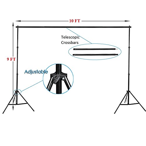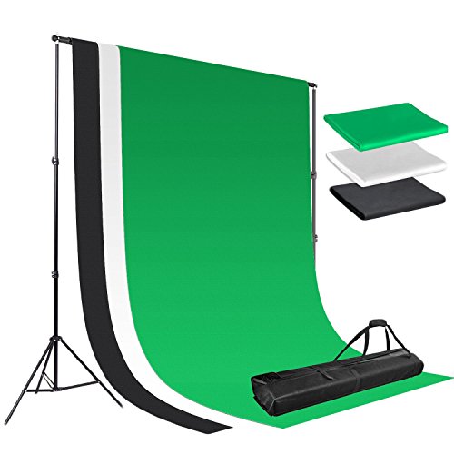Telescopic Aluminum Alloy Photography Photo Video Studio Backdrop Background Kit,100% Cotton Muslin 6' x 9' White Black Green Chromakey Backdrops Backdrop Support Stand with Carry Bag