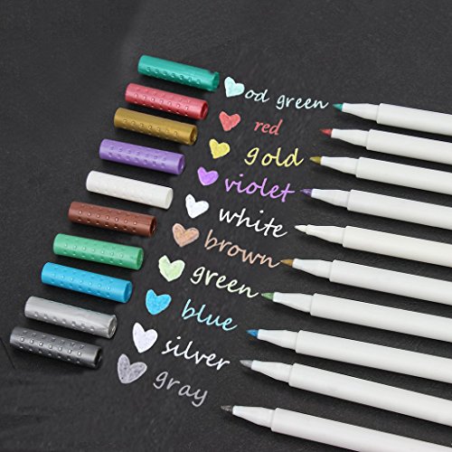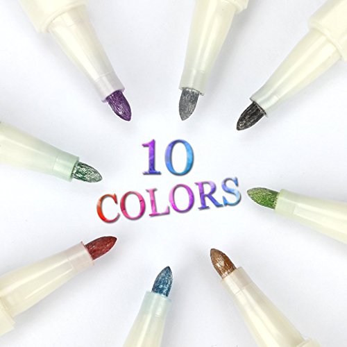 - ※ Metallic Color Pens:water-based ink ,Permanent marker and water proof, non-toxic ink,Works on virtually any surface- metal, pottery, wood, rubber, glass, plastic, stone and more…