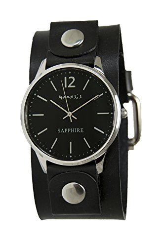 Nemesis Women's 'Sapphire' Quartz Stainless Steel and Leather Casual Watch, Color:Black (Model: GB252K)