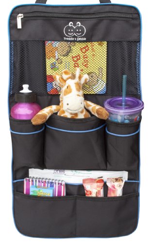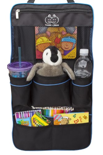 - Title : Backseat Organizer by Freddie and Sebbie - Luxury Car Storage Organizer - Perfect For Your Kids Accessories, Ipad, Tablets, Toys, Sippy Cups, Water Bottle, Etc - Designed To Fit Most Vehicles With The Aid Of Adjustable Straps Top And Bottom Which Keeps The Car Storage Backseat Organizer Securely In Position - Makes A Great Car Seat Protector, Back Seat Protector Or Kick Mat - Made in Black With Blue Piping - Protect Your Investment - Comes With A Lifetime Guarantee From A Company You Can Trust
