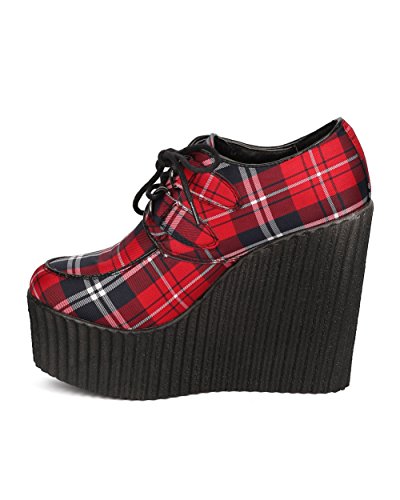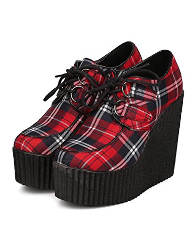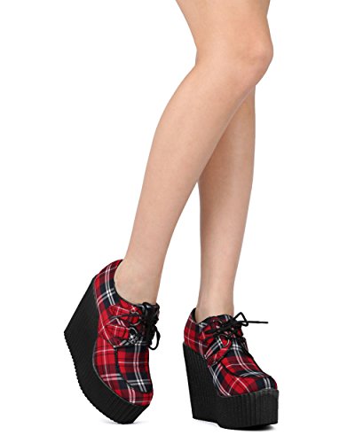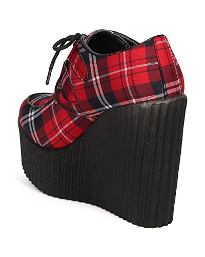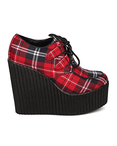 Women Fabric Plaid Wedge Bootie - Dressy, Preppy, Trendy - Lace Up Platform Heel - GD87 By Wild Diva