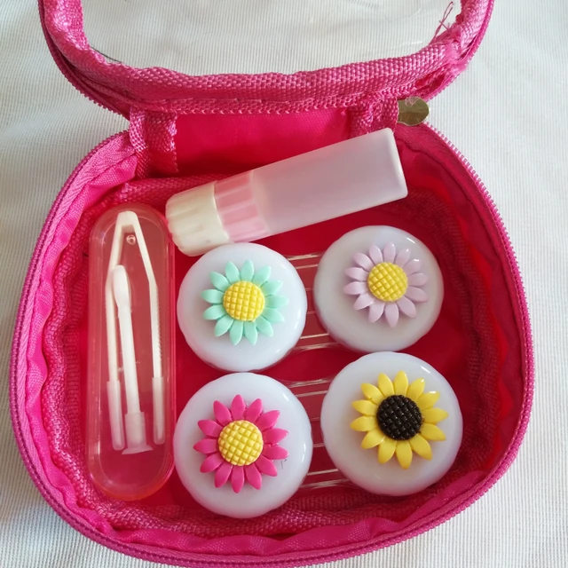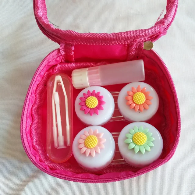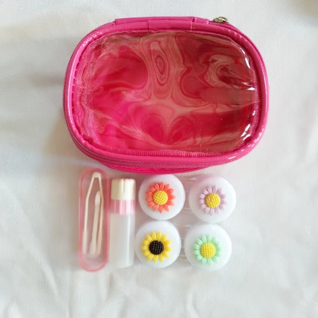 | [해외] LIUSVENTINA DIY 귀여운 핑크 꽃 콘택트 렌즈 케이스 눈 콘택트 렌즈 상자 안경 안경 케이스 |