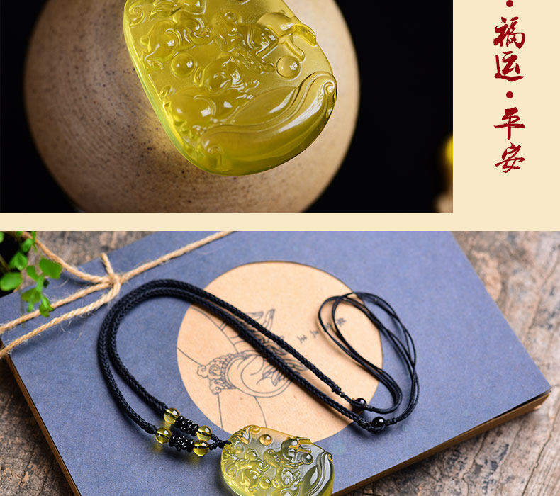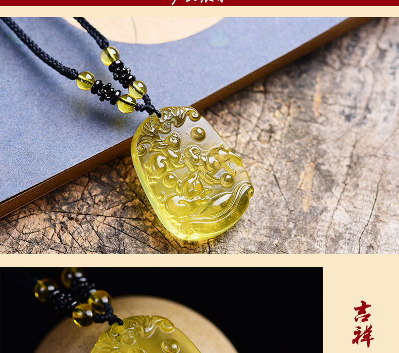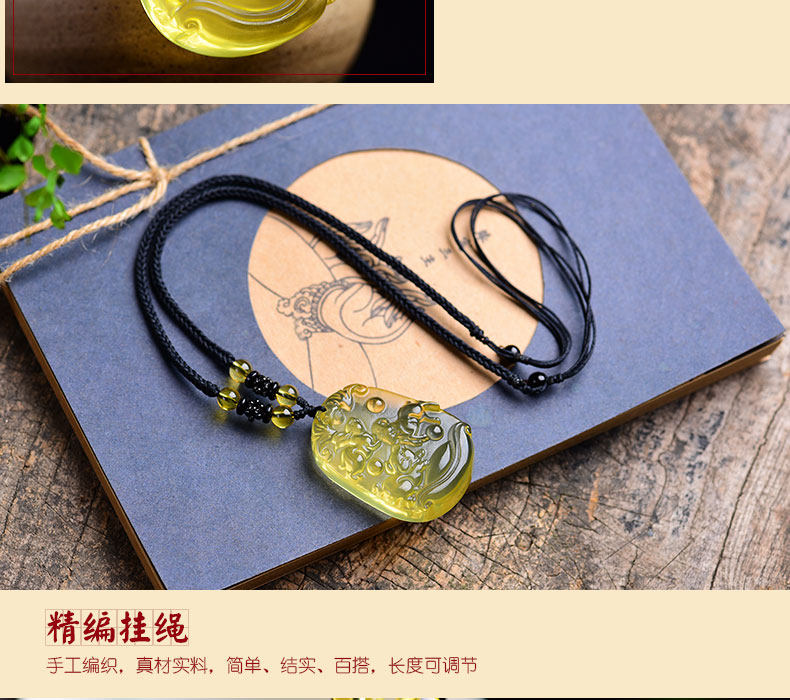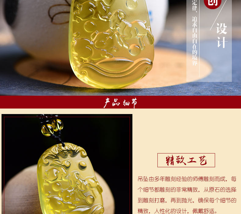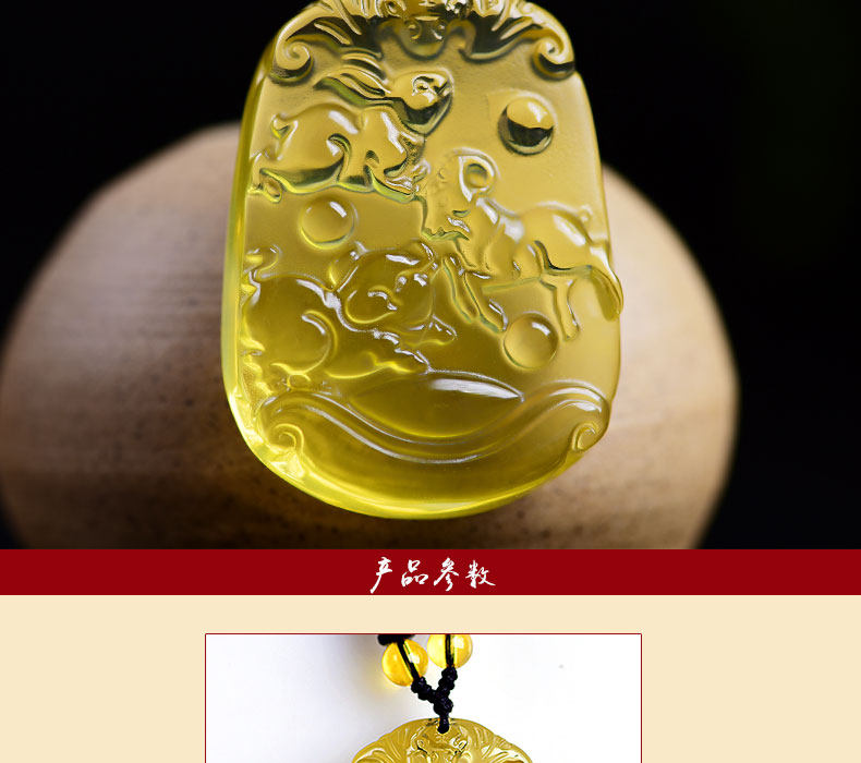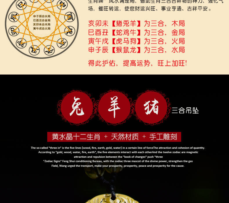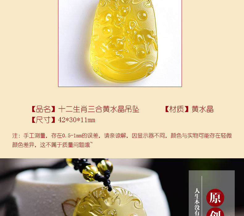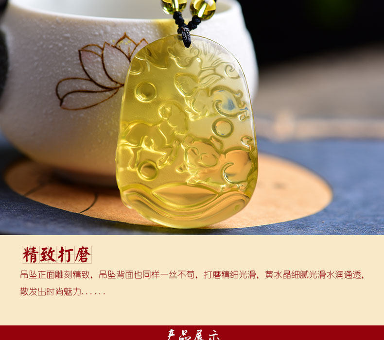 开光天然黄水晶亥卯未三合吊坠生肖猪兔羊吉祥物男女项链饰品挂件