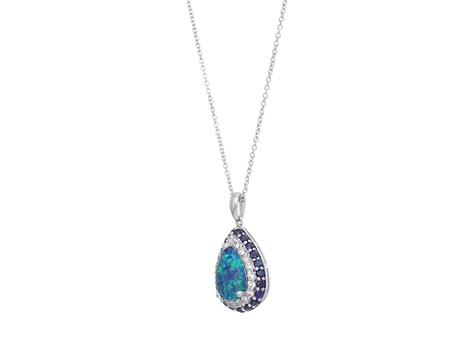 Sterling Silver Simulated Green Opal, Created Sapphire and Created White Sapphire Pear Pendant Necklace, 18"