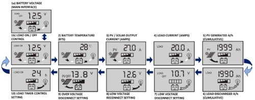 LCD digital display provides system information (amperage, voltage, temperature, load control etc.)
