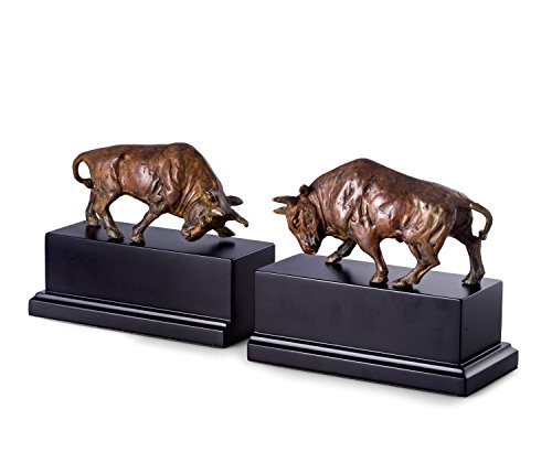 Paloma Collection AJ-R19K Double Bull Bookends with Flamed Patina Finish on Wood Base, Black/Brass