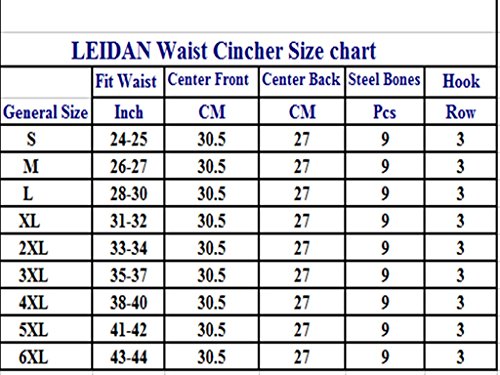 Features: Skin comfortable,Seamless shaping,Not easily deformed,Washable and durable Product advantages: Move the fat,Sculpture waist,Focus on abdomen,Breathable thin Bid farewell bucket waist, you only need a corset,360 degrees to shape the curve, Harsh farewell bucket waist, you only need a corset.Adjustable buttons, all-round ventilation holes, Seven memory cartilages support the waist Super elastic 3 seconds bid farewell bucket waist Here's how it works: simply wrap the cincher around your midsection, this creates compression and stimulating thermal activity during your workout. Styling Feature 6 columns of hook-and-eye closures prevents migration. 9 Sizes: S,M,L,XL,2XL,3XL,4XL ,5XL,6XL Front and Linning Cotton 7 spiral felixboning supports,flexible and durable,bend easily but recover quickly to origin 6 hook-and-eye closures for flexible sizing Boosts thermal activity and gently lifts underbust High Compression,reduce waistline up to 3 sizes instantly LEIDAN is a trusted fashion brand for sexy lingerie, high quality waist training corsets and clubwear dresses. For waist training corsets, please use our own Size Chart,and choose the proper size based on your waist size. 0