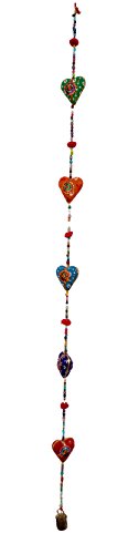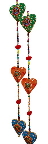Rastogi Handicrtafts Door Hanging Decorative Cotton heart in Vibrant Color Stringed with Beads and Bell Traditional Indian Hanging Decoration 2 layer