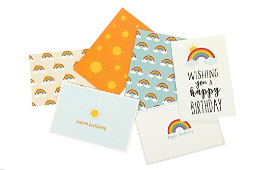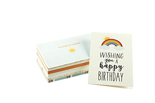 Happy Birthday Greeting Cards - Rainbow and Sun Designs - Bulk Box Set- Blank Inside - Includes 48 Cards and Envelopes - 4 x 6 Inches