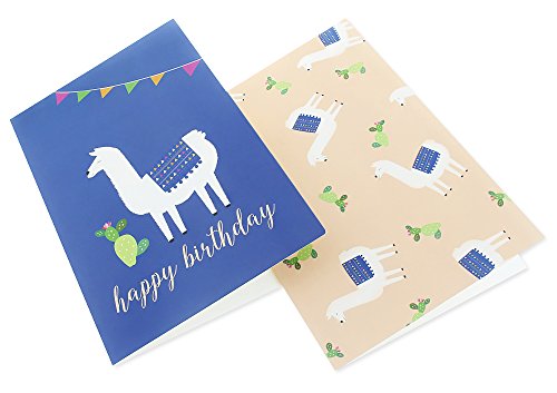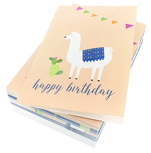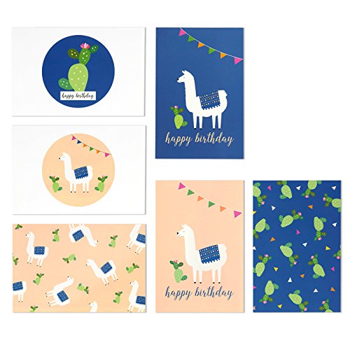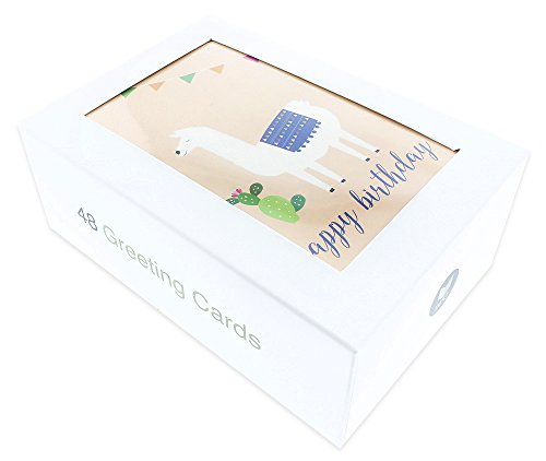 48 Pack Happy Birthday Greeting Cards, 6 Llama and Cactus Designs, Bulk Box Set Variety Assortment, Envelopes Included 4 x 6 Inches