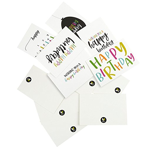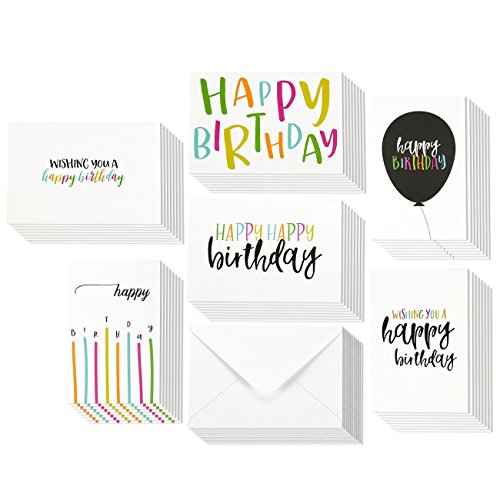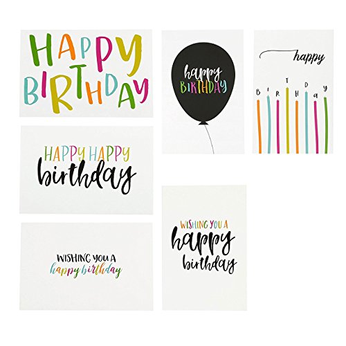 48 Pack Happy Birthday Greeting Cards, 6 Handwritten Modern Style Colorful Designs, Bulk Box Set Variety Assortment, Envelopes Included 4 x 6 Inches