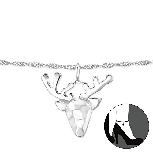 -. Feature : Material: Silver / Finishing: 925 Sterling Silver Plated + E-coat / Silver Weight: 0.04oz / 1.25g / Length: 9.8in / 25cm, Extension: 1.1in / 3cm / Deer Size: 0.59in x 0.55in, 15mm x 14mm