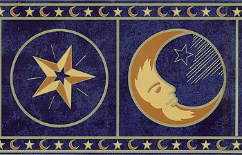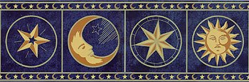 -. Title : Cosmic Moon and Stars - Room Decor - Kids Nursery Wallpaper Border