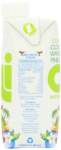 -. Feature : Enthält 100 % reines Kokosnuss Wasser - laktosefrei / Kalorienarm, fett- und cholesterinfrei / Sortenreines Kokosnusswasser feinster Kokosnüsse und Ananas Geschmack / Ohne Konservierungsmittel / Natürliches Elektrolytgetränk mit Kalium, Calcium und anderen wichtigen Nährstoffen