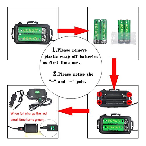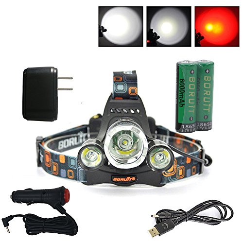 Irontria XML-T6 LED Headlamp with Red Light Rechargeable for Camping, Running,Reading,Bicycle,Hunting,Fishing. with 218650 Rechargeable Batteries+Wall Charger+Car Charger+USB Data Cable