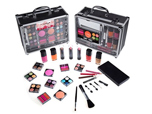-. Feature : Need a easy and nice make up stuff, this is the starter kit for makeup newbies / Includes: Eye shadows , blush, powders, nail polish, pencils, sharpener, mirror and brushes / Aluminum makeup case is reusable and you can re-Use it for any purpose / Pedicure and manicure accessories, fashion lip-glosses, trendy and hot lipstick colors