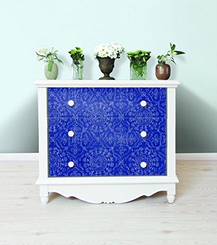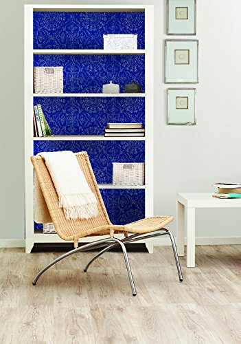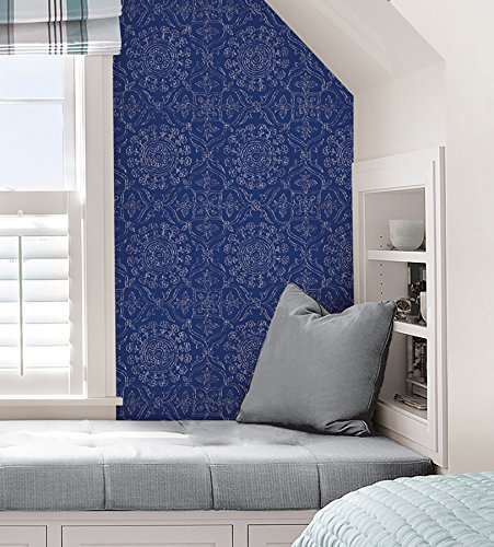 -. Brand : Brewster -. Feature : Dimensions: 20.5W in. x 18H ft. / Intricate pattern on cobalt blue back / Vinyl for easy cleaning / Peel and stick over P.R.Imed or painted walls / Easy to remove and will not damage walls -. Label : Brewster Home Fashions -. Manufacturer : Brewster Home Fashions -. MPN : NU1816 -. PackageQuantity : 1 -. PartNumber : NU1816 -. ProductGroup : Furniture -. ProductTypeName : HOME_FURNITURE_AND_DECOR -. Publisher : Brewster Home Fashions -. Studio : Brewster Home Fashions -. Title : Brewster Byzantine Peel and Stick Wallpaper