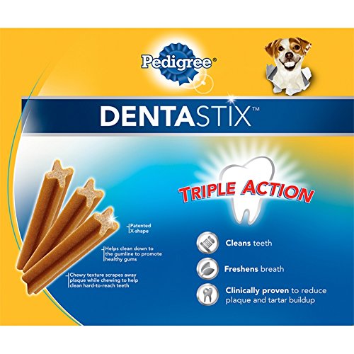 PEDIGREE DENTASTIX Original Mini Treats for Dogs have a special chewy texture that helps clean between teeth and down to the gumline. These DENTASTIX Treats are clinically proven to reduce tartar buildup. Plus, our patented, X-shaped dental chews freshen breath while treating your dog to better oral health. PEDIGREE Oral Care Treats are dog snacks you can trust, and your dog will love.Feature