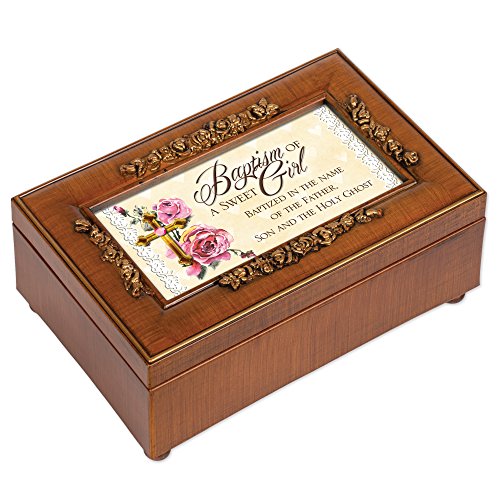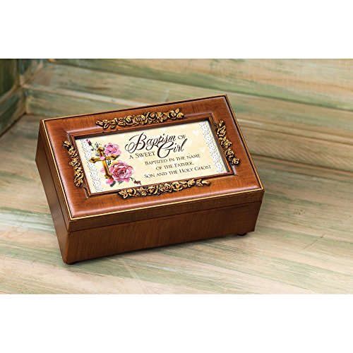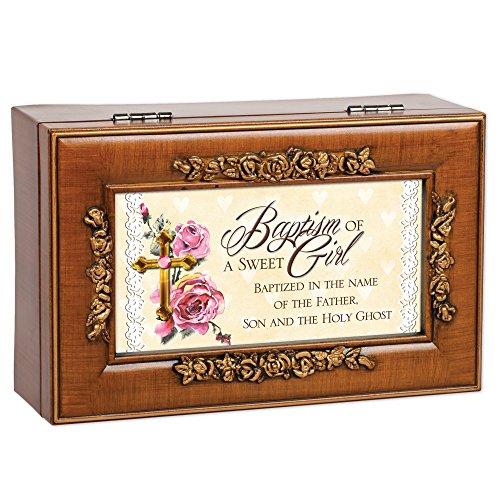 Baptism of a Sweet Girl Rich Walnut Finish Petite Jewelry Music Box - Plays Ave Maria