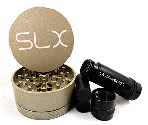 SLX Grinder 2.0 Version Non-Stick 4 Piece Gold - 2.4" Inch w/ La Grinders Pollen Press
