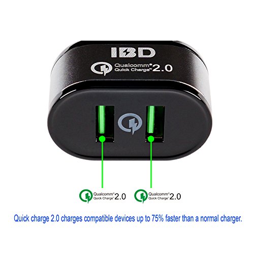 ►Quick Charge 2.0 Technology:Reduces Charge Time, charges compatible devices up to 75% faster than a normal charger with total 36W sufficient power,Dual smart port with built-in IC chips can intelligently detect and charge 2 devices simultaneously.