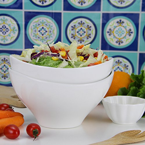 1) HOW DOES "Y" SHAPED SERVING BOWLS WORK? In depth beyond expectation, you can easily mix up together what you want. The 45-oz serving bowl are suitable for any occasion like the coming Halloween, Thanksgiving Day, Christmas. 2) 1.4quart / 45oz You will get two 45-oz serving bowl. They will play an important role in your family dinner during Thanksgiving Day and Christmas dinner. Perfect for cereal, vegetable, fruits, breads, esp Big Salad. 3) HEALTH GUARANTEE All porcelain dinnerware sets of DOWAN are FDA approved. They are sturdy and durable. Microwave, dishwasher, freezer and oven save. 4) DOWAN 30 DAY MONEY BACK GUARANTEE To show our confidence in our products, we will provide "30 Day Money Back Guarantee" service, if you are not 100% satisfied with our product after you received the item, please feel free to contact us, we will try our best to provide you a satisfactory shopping experience. HOW TO KEEP PORCELAIN DINNERWARE? * New porcelain dinnerware set is suggested to be boiled in the salt water for 3-5 minutes before put into use. This can lengthen its service life. * Avoid putting porcelain dinnerware set into the oven immediately after taking it out from the freezer. Because fierce temperature change will cause porcelain to crack. DOWAN 45oz / 2-Pack porcelain serving bowl is on a flash sale, click "Add to Cart" now.