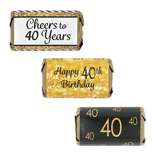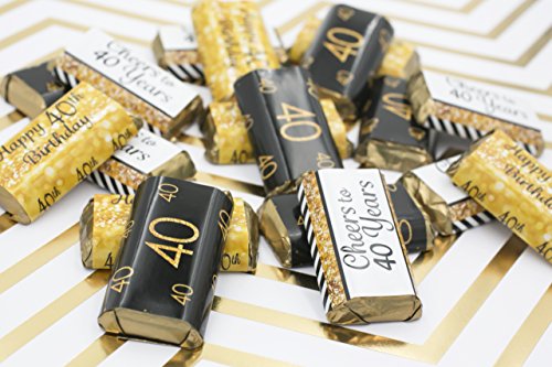Includes 54 Self-Adhesive, Pre-cut, 40th Birthday Party Favor Stickers Designed to Perfectly Fit Hershey's Miniature Candy Bars. Printed On Flat Sheets To Prevent Curling.
