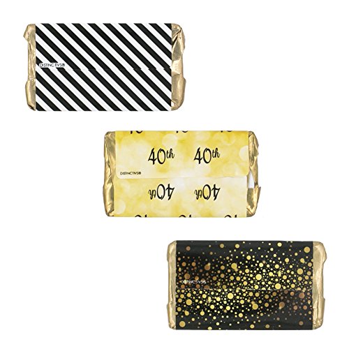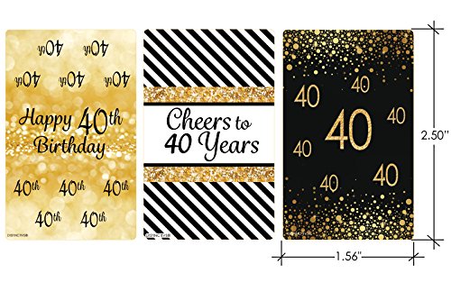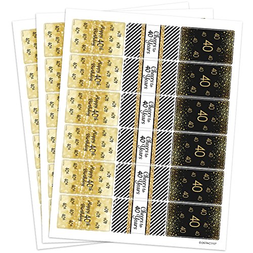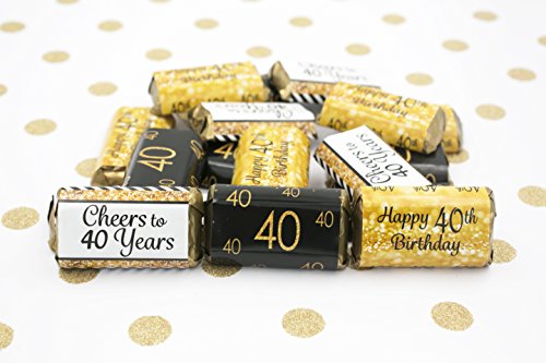 40th Birthday Party Miniatures Candy Bar Wrapper Stickers - Gold and Black (Set of 54)