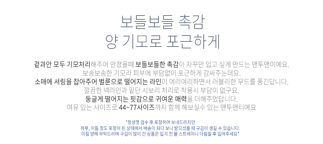 .같은 사이즈라도 체형에 따라 핏감이 조금씩 다를 수 있습니다.