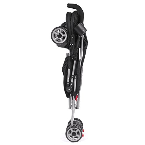 -. Feature : Simple and compact 1-step fold makes travel a breeze - Stroller weighs only 9.5 pounds / 3-point safety harness to keep baby secure - accommodates child to 40 lbs. / Extended sun canopy and rear hood provide more sun coverage than most umbrella strollers / Cool-climate roll-up exposes mesh for increased air circulation & creates a head rest / Shock-absorbing front swivel wheels and foam padded handles for easy steering