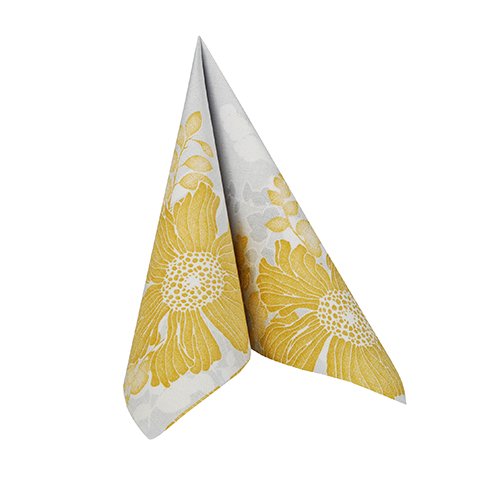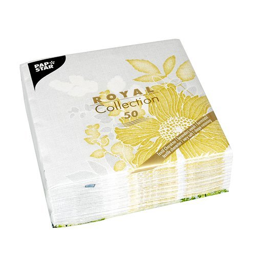 Linen-like Paper Disposable Napkins, 50 Pack, Premium Quality, looks and feels like cloth, Royal Collection, "Annabel Floral design" 1/4 - Fold, 16" x 16" Great for Weddings/Parties (Yellow/Gold)
