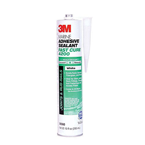 3M Marine Adhesive Sealant Fast Cure 4200FC bonds and seals fiberglass, gelcoat and wood. Ideal for rub-rails, stern-joints, deck and through-hull fittings, and access plates. Medium strength allows for disassembly.