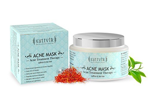 Sattvik Organics Acne Mask Clarifying Treatment Key Benefits : • Heals Acne & Pimples • Evens Skin Tone & Treats Acne Marks • Regulates Hormonal Imbalances • Maintains Ideal Moisture Content • Reduces Pore Appearance Product Details: This Sandalwood & Bengal Kino extracts enriched acne & pimple drying pack ensures that the infection is effectively healed and the excess oil is removed to have an acne, pimple free smooth skin. It also assists healing of acne marks. Key Ingredients : Acacia Arabica (Shittah), Crocus Sativus (Saffron), Silicate Minerals (Kaolin), Aloe Barbadensis (Aloe Vera), Bees Wax, Melaleuca Aternifolia (Tea Tree), Citrus Limonum (Lemon), Gandhak, Cupressus Sempervirens (Cyprus Extract), Citrus Bergamia (Bergamoth Extract). Usage Directions : Apply & leave it for 10-15 minutes. Wash off when it dries.Feature