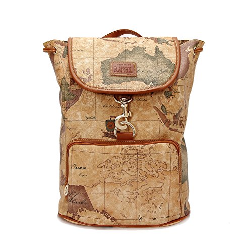 -. Feature : 世界地図の一部を柄としてデザインされたおしゃれな女性用リュックサック。防水性や耐熱性にも優れています。 / 【素材】PVC、【裏地素材】ポリエステル、【カラー】:ベージュ、世界地図柄 / 内側:ポケット、小物入れポケットが複数設置されています。 / サイズ:横28cm 高さ36cm マチ幅15cm 重さ0.85kg / 38インチほどの大容量で、14インチのノートパソコンも入れます。注:各袋の上にパターンが同じではありませんあなたが受け取る場合は、ピクチャーショーで製品を一致していない、正常です。