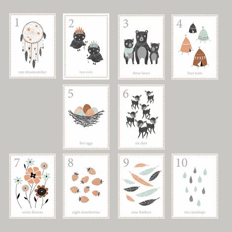 Boho Woodland Number Counting Wall Cards, Set of Ten 5x7 Wall Art Prints, English, Forest Nursery Wall Art Decor, Kid's Art Decor, Gender Neutral Nursery, Nature Themed, Woodland Nursery