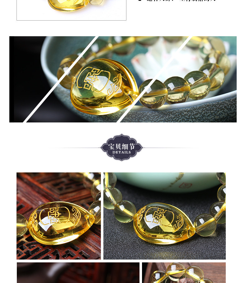 开光黄水晶【生肖猪】亥纳福禄七星堂鸡年开运吉祥物手链