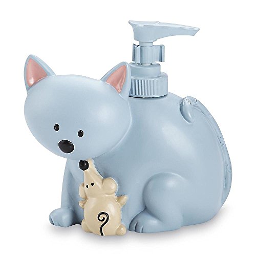 - A cute cat and mouse design will store your favorite soap or lotion with a convenient screw-top pump