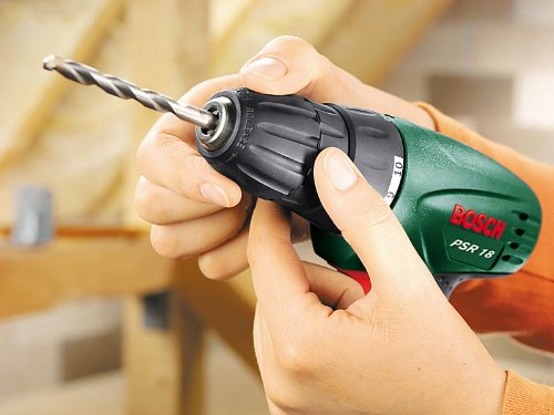 -. Feature : Bosch-Akkubohrschrauber PSR 18 / Kompakt und kraftvoll für maximale Leistung beim Schrauben - mit Bohrstufe / Leistungsstarker 18-V-Motor mit Planetengetriebe / Drehmomentvorwahl mit 10 Drehmomentstufen plus Bohrstellung - optimale Kraft für jede Anwendung / Zweihülsiges "Click"-Schnellspannbohrfutter - einfacher werkzeugloser Wechsel der Einsatzwerkzeuge